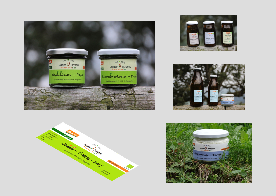 Immer mehr Menschen vertrauen auf Bioprodukte, weil sie von Natur aus viele Nährstoffe enthalten und man bewusst auf den Zusatz schädlicher Stoffe verzichtet. Die nachhaltig und ökologisch erzeugten Lebensmittel vom Demeter Biohof Josef Tatschl bieten besten Geschmack aus schonender Verarbeitung. Shopper und Etiketten mit neuem Logo, Schriftzug und neuer Bildsprache rücken die Natürlichkeit und Originalität seiner Bio- und Naturprodukte sowie die damit verbundene Sorgfalt in den Mittelpunkt.